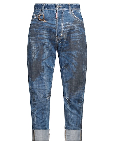 tapered jeans, denim, stretchy fabric, tie-dyed, brand logo, dark wash, high waisted, regular fit, button fastenings, five pockets, do not wash, do not bleach, do not tumble dry, do not iron, cropped