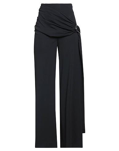 wide-leg pants, jersey, solid color, wrap-effect, high waisted, relaxed fit, buckle fastening, stretch, dry clean, do not bleach, do not tumble dry