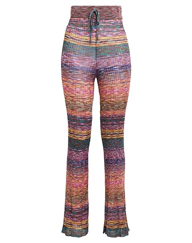 flared pants, intarsia-knit, lightweight knit, multicolor, no appliqués, high waisted, regular fit, drawstring fastening, without pockets, machine wash or dry clean, do not bleach, tumble dry
