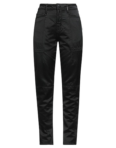 tapered pants, satin, solid color, brand logo, high waisted, slim fit, zipper fastening, button fastenings, multipockets, hand wash, do not bleach, do not tumble dry