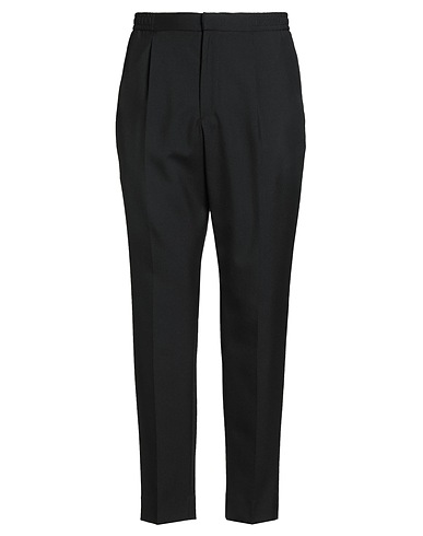 casual pants, wool, solid color, no appliqués, high waisted, tapered leg, regular fit, zipper fastening, hook fastenings, slit pockets, dry clean, do not bleach, do not tumble dry, this brand runs small