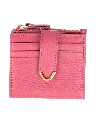 wallet, pebbled-leather, solid color, brand logo, snap fastenings, card slots, contains non-textile parts of animal origin
