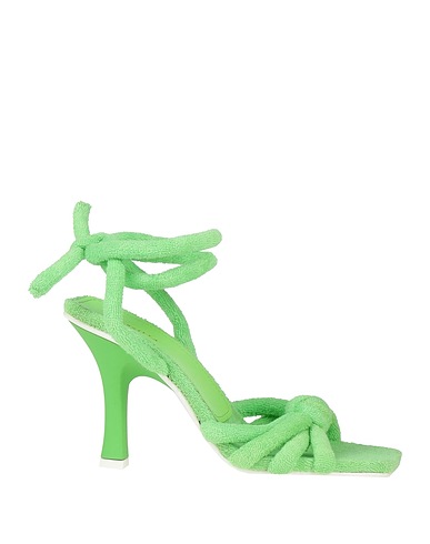 sandals, terrycloth, solid color, no appliqués, leather lining, ties at ankle, pointed toe, spike heel, covered heel, leather/rubber sole, contains non-textile parts of animal origin