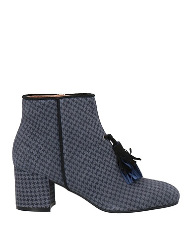 ankle boots, brushed synthetic material, houndstooth, tassels, leather lining, zipper fastening, round toe, geometric heel, rubber sole, contains non-textile parts of animal origin