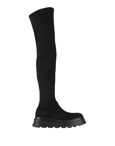 over-the-knee boots, suede-effect fabric, solid color, no appliqués, unlined, round toe, wedge heel, rubber cleated sole