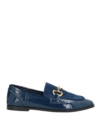 loafers, patent leather, suede, solid color with appliqués, embellished, rubber lining, round toe, flat, rubber sole, contains non-textile parts of animal origin