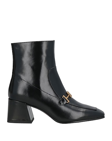 ankle boots, leather, embellished, solid color with appliqués, leather lining, zipper fastening, square toe, square heel, rubber sole, contains non-textile parts of animal origin