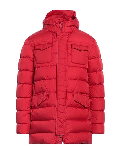 down jacket, shell, quilted, brand logo, solid color, hooded, long sleeves, goose down interior, heavyweight padding, snap fastenings, zipper fastening, flap pockets, internal pockets, contains non-textile parts of animal origin, dry clean, do not bleach, do not tumble dry