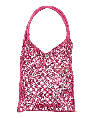 shoulder bag, raffia, solid color with appliqués, beads, double handle, medium size