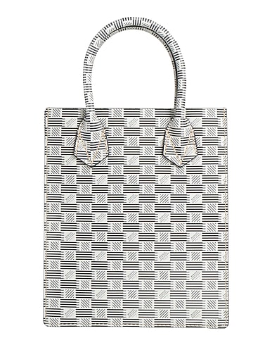 handbag, leather, logo-print, no appliqués, double handle, detachable shoulder strap, medium size, contains non-textile parts of animal origin