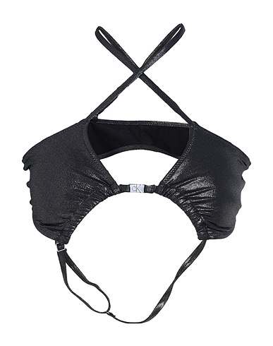 bikini top, synthetic jersey, solid color, glittered, brand logo, removable padding, stretch
