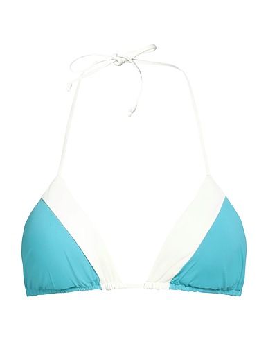 triangle bikini top, synthetic jersey, two-tone, brand logo, tie fastening, removable padding, stretch, hand wash or dry clean, do not bleach, do not tumble dry