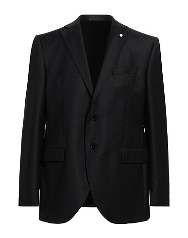 flannel, twill, no appliqués, solid color, lapel collar, single-breasted , long sleeves, fully lined, 2 buttons, multipockets, pocket with flap, dual back vents, single-breasted jacket