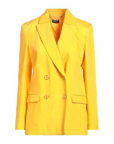 double-breasted blazer, woven, solid color, no appliqués, lapel collar, long sleeves, shoulder pads, fully lined, button fastenings, flap pockets, dry clean, do not bleach, do not tumble dry