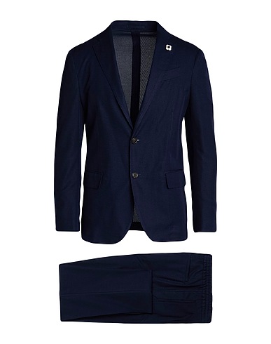 single-breasted suit, jersey, solid color, embellished, lapel collar, long sleeves, partially lined, zipper fastening, button fastenings, multipockets, high waisted, elasticized waist, dry clean, do not bleach, do not tumble dry