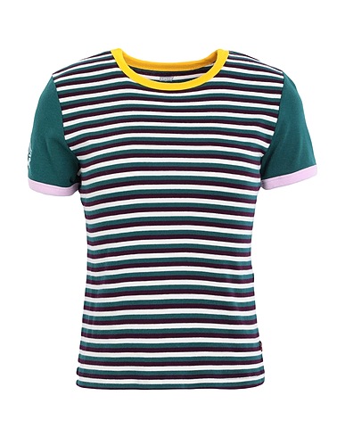 printed t-shirt, jersey, striped, brand logo, crewneck, short sleeves