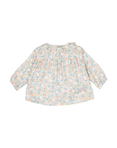 plain weave, ruffles, floral design, crewneck, long sleeves, snap buttons fastening, no pockets, wash at 30° c, do not dry clean, do not bleach, do not tumble dry, iron at 110° c max