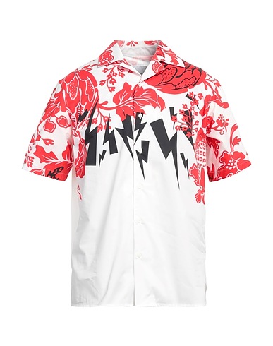 regular-fit shirt, woven, plain colour with print, no appliqués, camp collar, short sleeves, button fastenings, this brand runs large