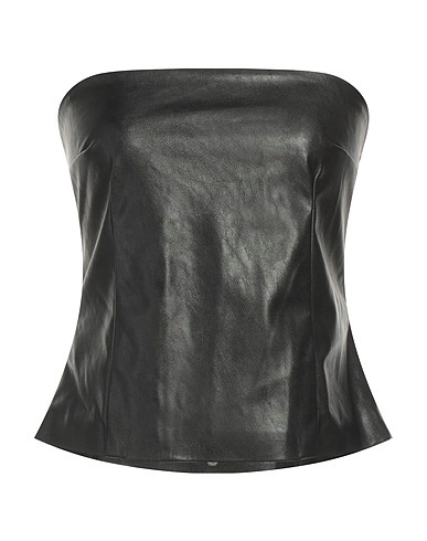 bandeau top, coated fabric, plain colour, brand logo, deep neckline, snap fastenings