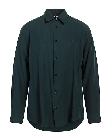 regular-fit shirt, woven, plain colour, embroidered logo, classic collar, long sleeves, button fastenings