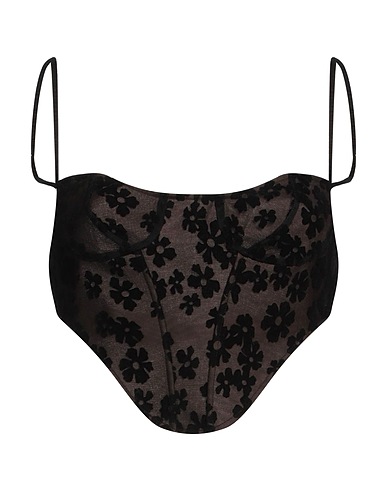 crop top, tulle, flocked, floral-print, no appliqués, deep neckline, sleeveless