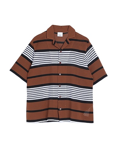 knitted, perforated, no appliqués, striped, classic collar, short sleeves, button fastenings, regular-fit shirt