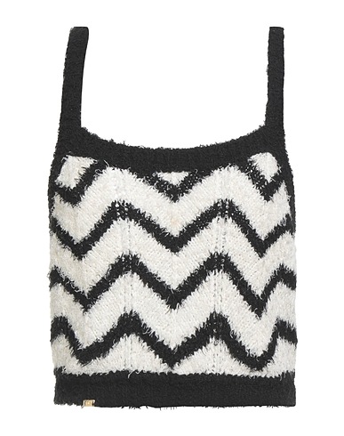 knitted, medium-weight knit, brand logo, striped, square neckline, sleeveless, no pockets, crop top, small sized