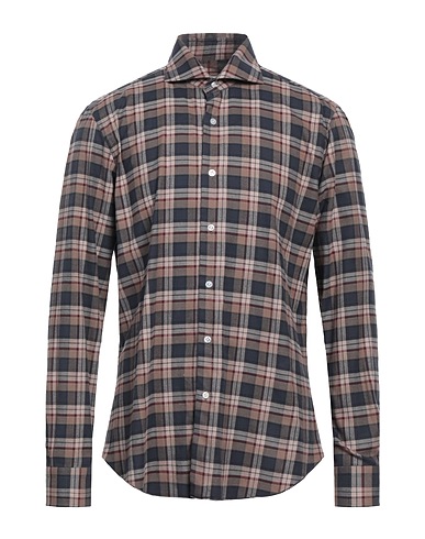 woven, brand logo, herringbone, tartan pattern, classic collar, long sleeves, buttoned cuffs, button fastenings, without pockets, regular-fit shirt