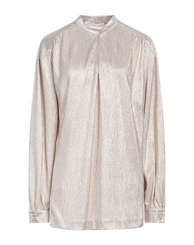 satin, metallic, no appliqués, plain colour, mandarin collar, long sleeves, buttoned cuffs, 1 button, without pockets, stretch, machine wash or dry clean, do not bleach, do not tumble dry, top