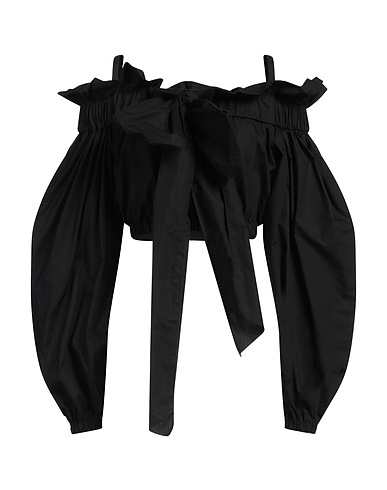 crop top, woven, plain colour, bow-detailed, gathered, boat neckline, long sleeves, machine wash or dry clean, do not bleach, do not tumble dry