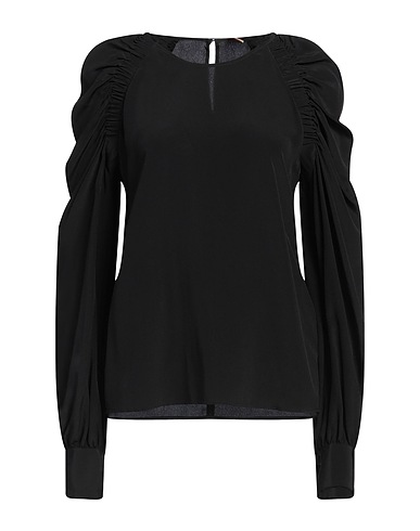 top, crepe, no appliqués, plain colour, crewneck, long sleeves, buttoned cuffs, button fastenings, without pockets, hand wash or dry clean, do not bleach, do not tumble dry