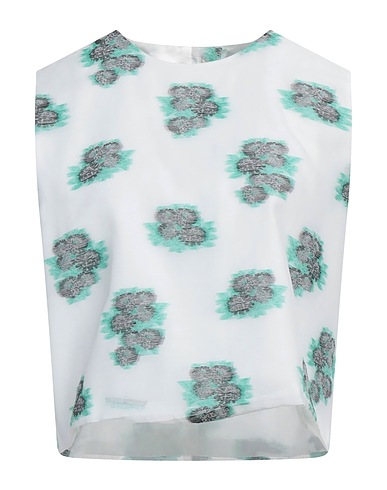 top, woven, floral-print, no appliqués, crewneck, sleeveless, button fastenings, dry clean, do not bleach, do not tumble dry