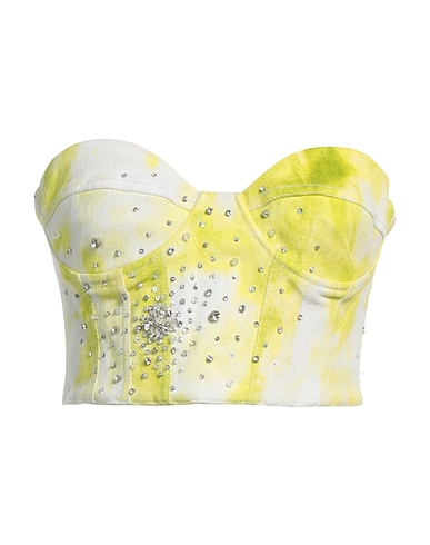 corset, denim, plain colour with appliqués, crystals, medium wash, scoop neckline, hook fastenings, zip fastening, dry clean, do not bleach, do not tumble dry