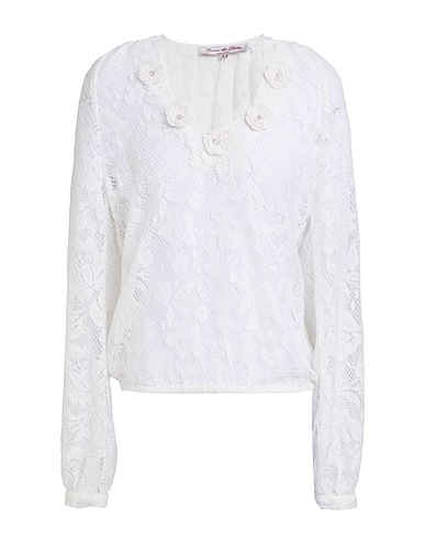 top, lace, plain colour with appliqués, floral appliqués, beads, deep neckline, long sleeves, elasticated hem, hand wash, do not bleach, tumble dry