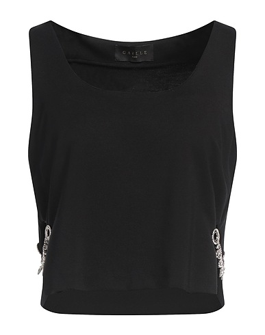 top, jersey, plain colour with appliqués, crystals, crewneck, sleeveless, stretch, dry clean, do not bleach, tumble dry