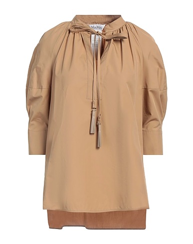 top, woven, plain colour, no appliqués, mandarin collar, 3/4 length sleeves, buttoned cuffs, tie fastening, side slit hemline, machine wash or dry clean, do not bleach, do not tumble dry