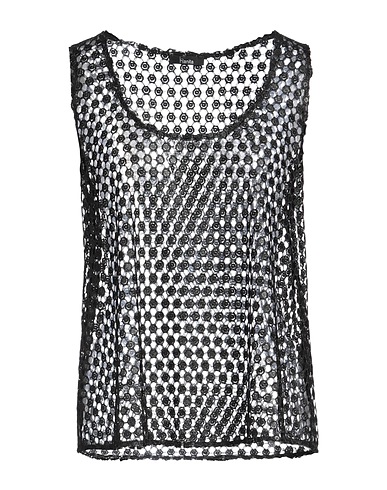 top, crochet-knit, lightweight knit, plain colour with appliqués, sequins, scoop neckline, sleeveless, machine wash or dry clean, do not bleach, do not tumble dry