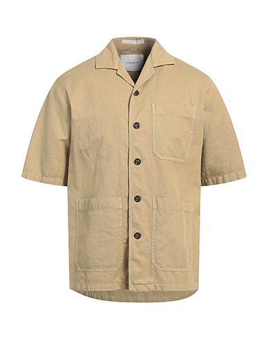 overshirt, woven, plain colour, no appliqués, camp collar, short sleeves, button fastenings, multipockets, stretch, machine wash or dry clean, do not bleach, do not tumble dry, this brand runs small