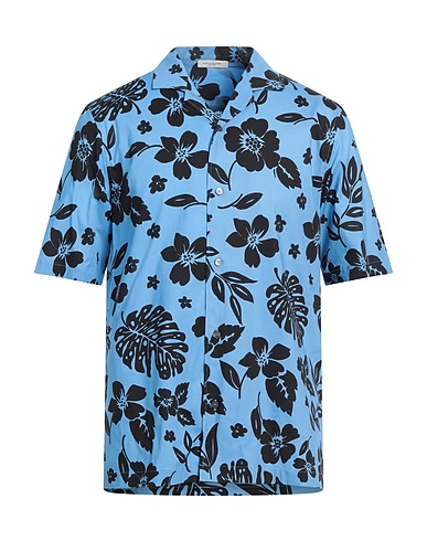 regular-fit shirt, woven, floral-print, no appliqués, camp collar, short sleeves, button fastenings, stretch, machine wash or dry clean, do not bleach, do not tumble dry, this brand runs small