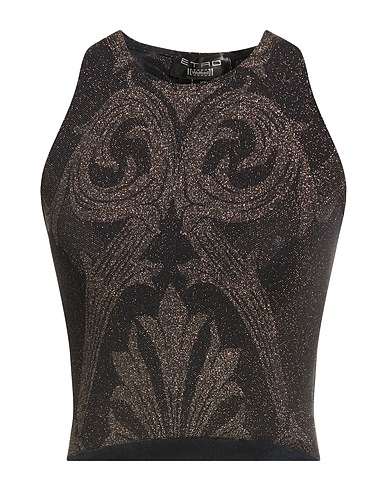 crop top, jersey, metallic, stretchy fabric, two-tone, no appliqués, crewneck, sleeveless, machine wash, do not bleach, do not tumble dry, do not iron