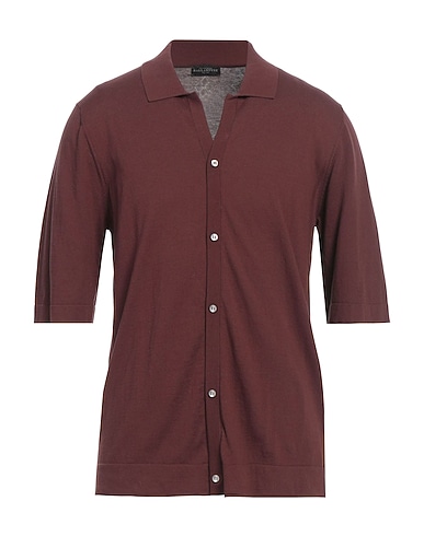 regular-fit shirt, knitted, lightweight knit, plain colour, embroidered logo, camp collar, short sleeves, button fastenings, contains non-textile parts of animal origin, hand wash or dry clean, do not bleach, do not tumble dry