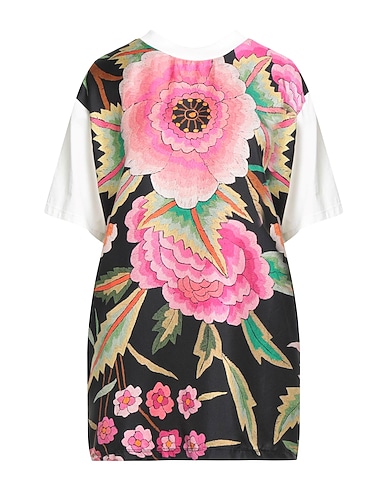 top, twill, jersey, floral-print, no appliqués, crewneck, short sleeves, dry clean, do not bleach, do not tumble dry