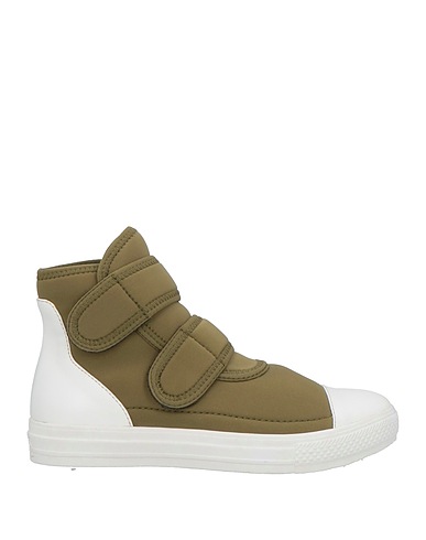 high-top trainers, scuba, no appliqués, two-tone, leather lining, velcro fastening, round toe, flat, rubber cleated sole, contains non-textile parts of animal origin, large sized