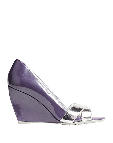 open-toe pumps, leather, metallic, plain colour, no appliqués, leather lining, open toe, wedge heel, covered wedge, rubber sole, contains non-textile parts of animal origin