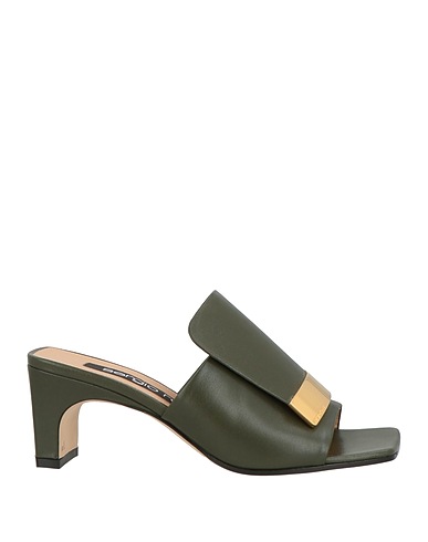 slide sandals, leather, plain colour with appliqués, brand logo, embellished, leather lining, square toe, square heel, leather sole, contains non-textile parts of animal origin