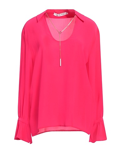 top, crepe, plain colour with appliqués, detachable application, classic collar, long sleeves, buttoned cuffs, dry clean, do not bleach, do not tumble dry