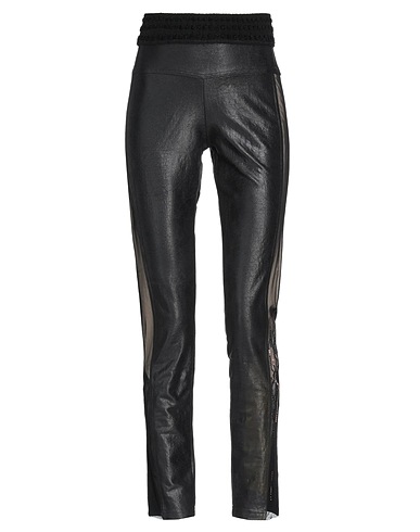 coated fabric, tulle, side seam stripes, rhinestones, two-tone, mid rise, elasticised, no pockets, stretch, pants