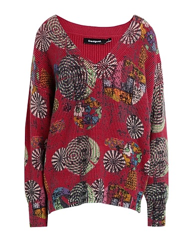knitted, ribbed, medium-weight knit, no appliqués, multicolour pattern, v-neck, long sleeves, no pockets