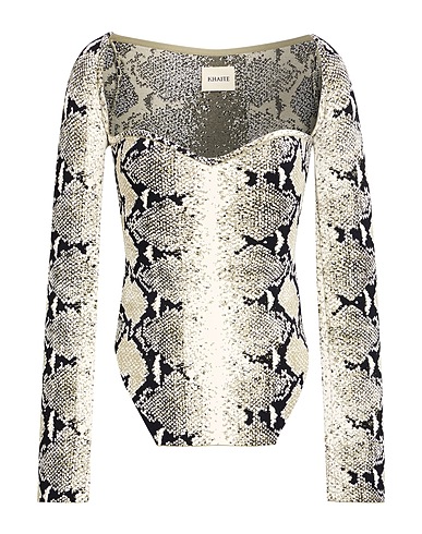 knitted, lightweight knit, no appliqués, snakeskin-print, sweetheart neckline, long sleeves, dry clean, do not bleach, do not tumble dry