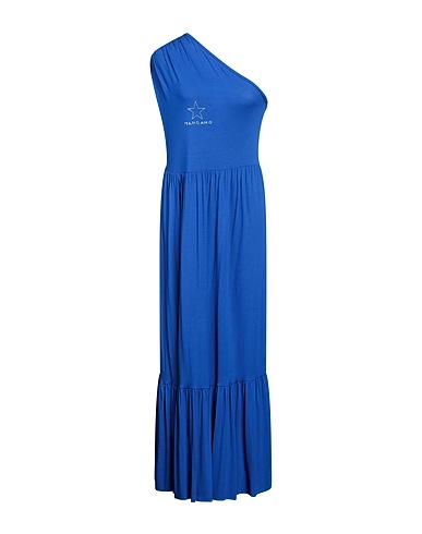 jersey, metal applications, brand logo, plain colour, deep neckline, one-shoulder, unlined, no pockets, trapeze style